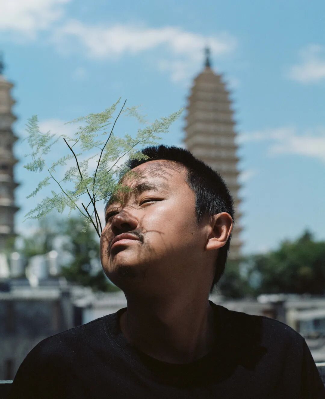 一位来自河南安阳的摄影师,背后是大理的崇圣寺三塔