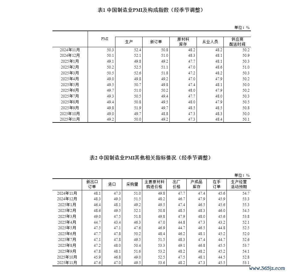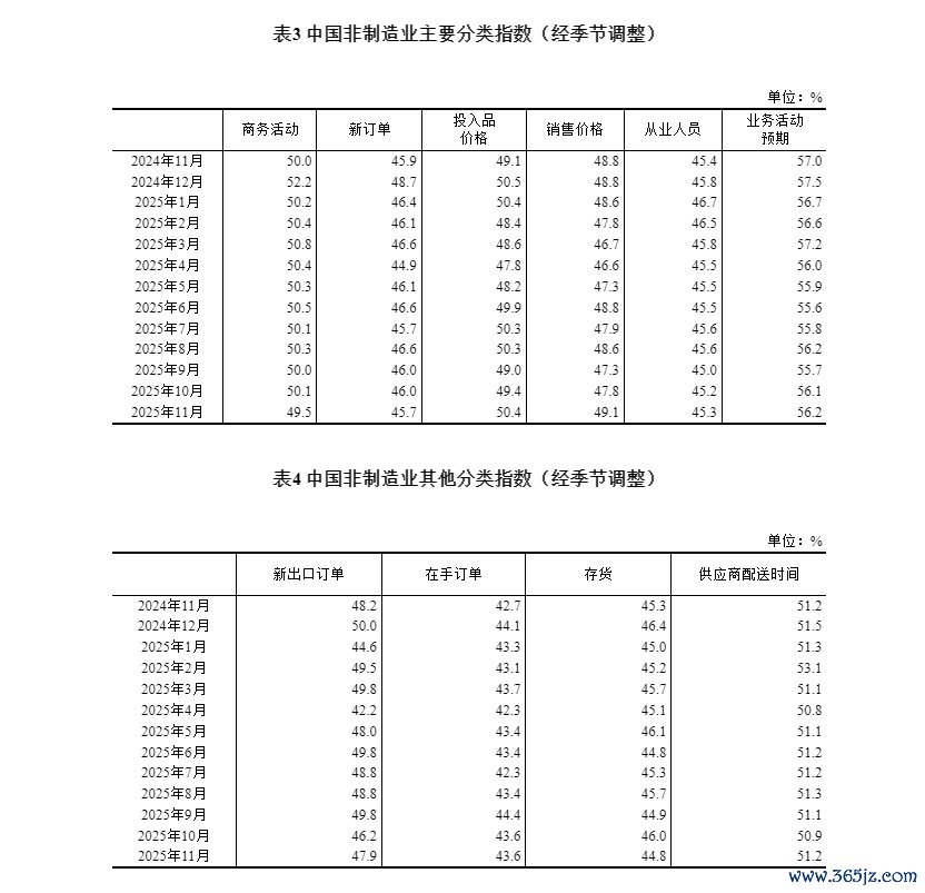 2025年11月中国采购经理指数运行情况金领速配